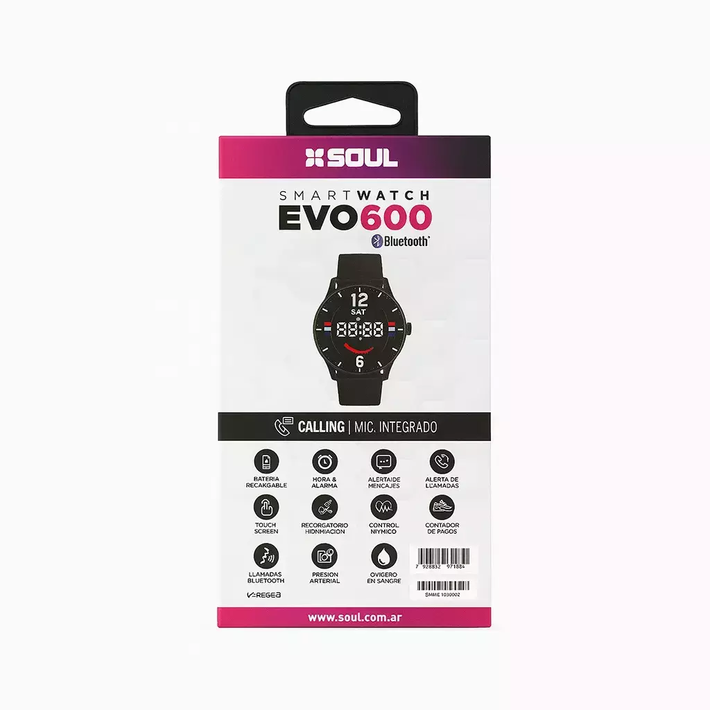 El Soul Evo 600 es un reloj inteligente diseñado para quienes buscan tecnología, estilo y funcionalidad en un solo dispositivo. Con pantalla a color, múltiples modos deportivos y monitoreo de salud 24/7, es el compañero perfecto para entrenar, trabajar o disfrutar de tu día con comodidad.
